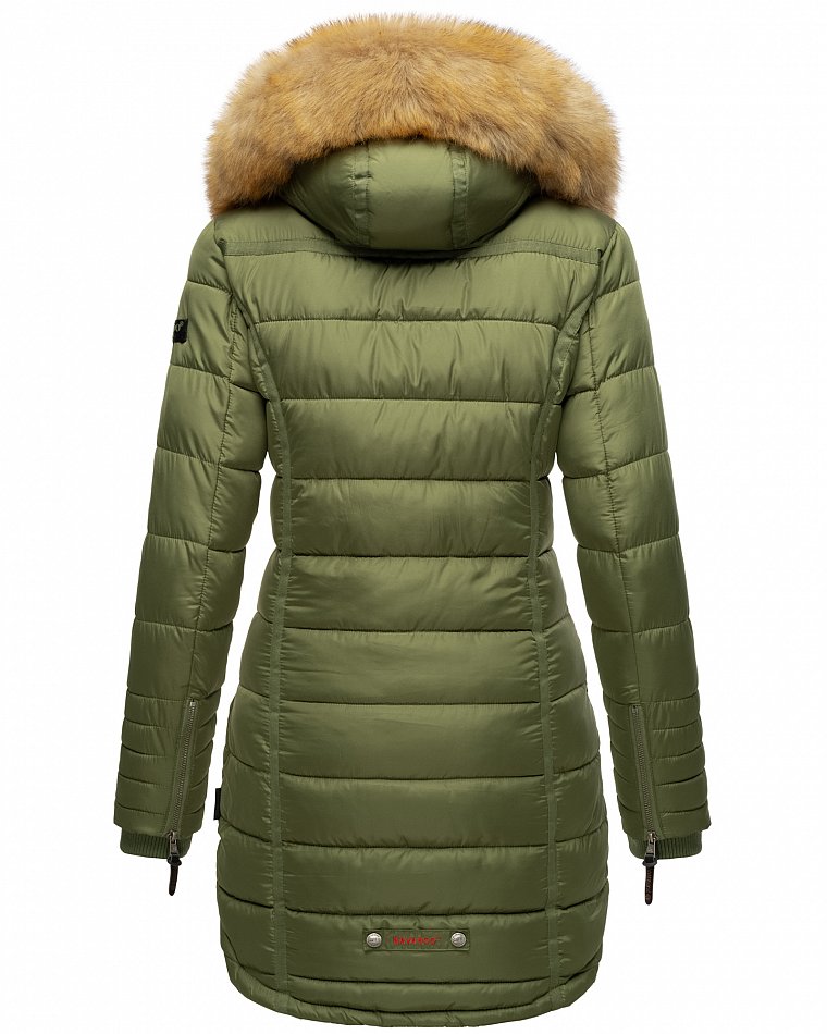 Navahoo Papaya Winter Mantel Steppjacke Gefüttert Mit Kapuze Dusty Olive Gr. 40 - L