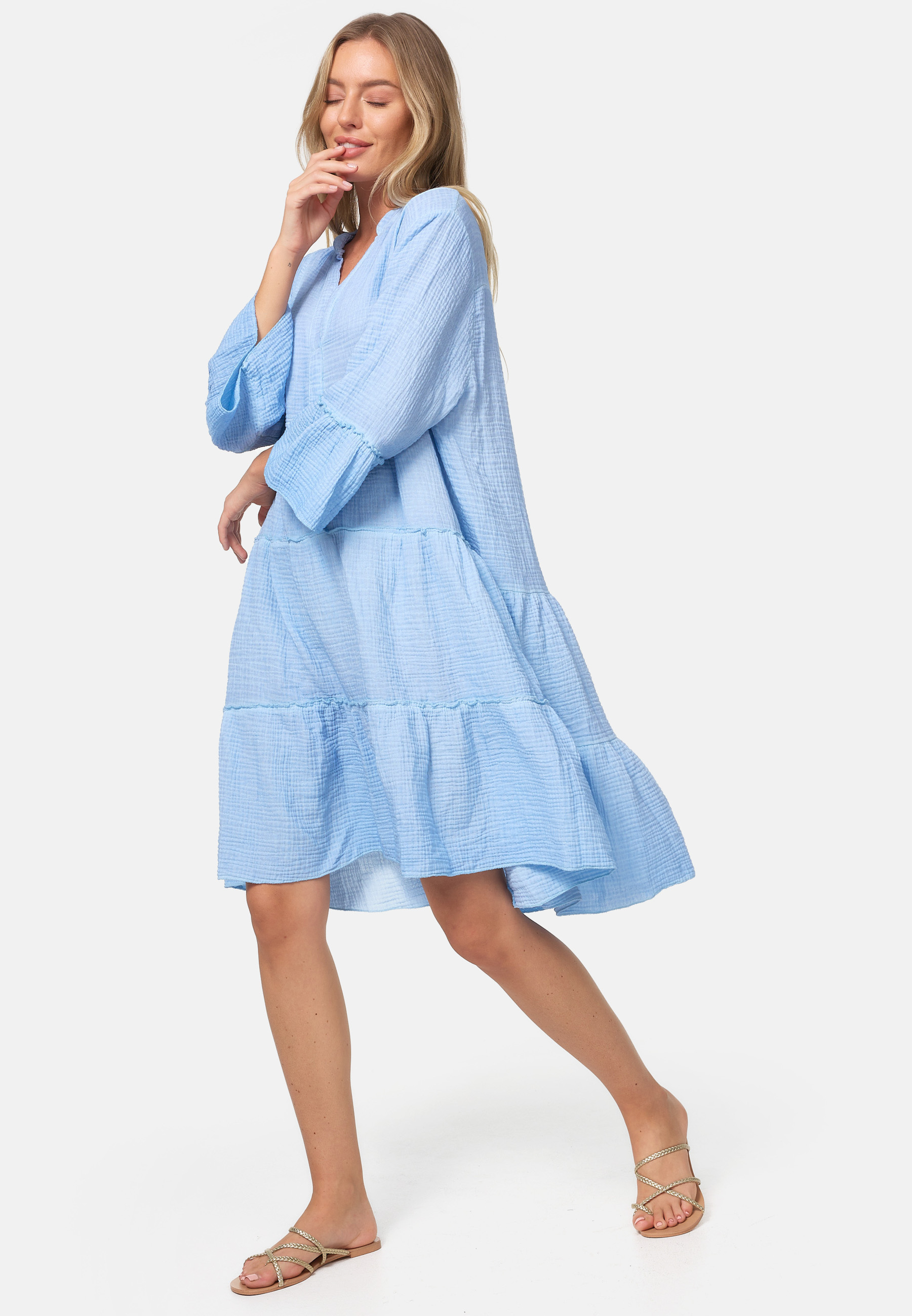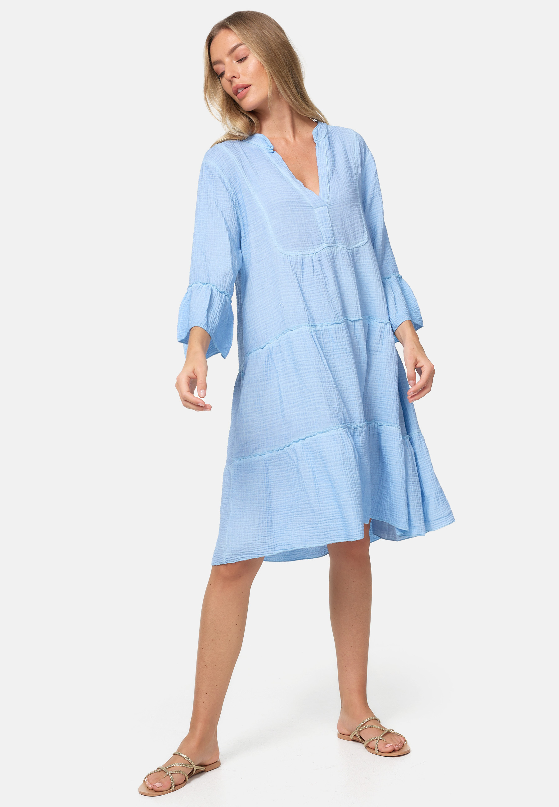 PM SELECTED Damen Musselin Tunika Kleid PM39 3250 Hellblau